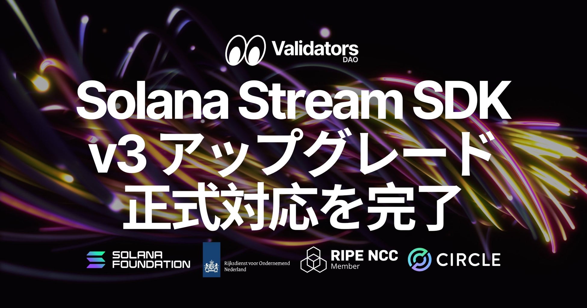 ELSOUL LABO B.V.(本社:オランダ・アムステルダム、代表取締役 CEO:川崎文武)と Validators DAO が開発・運営する Solana 向けオープンソースストリームクライアント「Solana Stream SDK」は、このたび Solana v3 系アップグレードへの正式対応を完了し、Rust 版・TypeScript 版の両方で新バージョンを公開しました。
