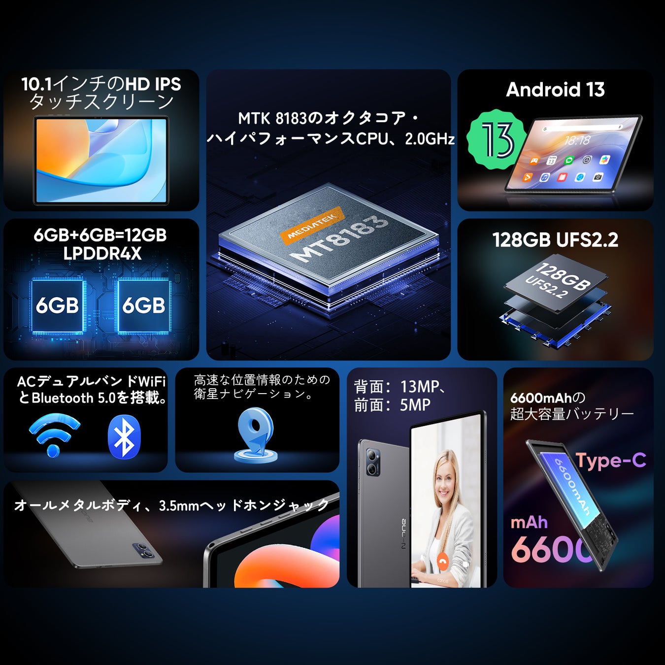 多用途Android 13タブレット Wi-Fiモデル+GPS+13MP/5MPカメラ+画面記録。GPS+GLONASS+Galileoで正確な位置情報を取得し、高品質なカメラと画面記録に対応。
