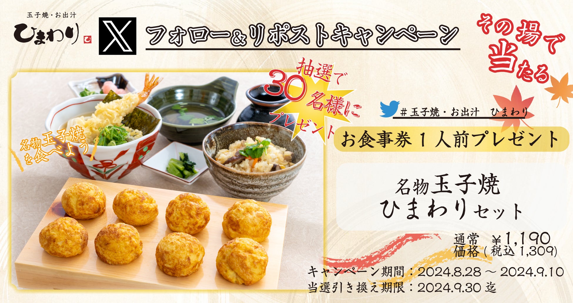 【玉子焼・お出汁 ひまわり】8/28~「名物玉子焼 ひまわりセット」プレゼントキャンペーン開始!