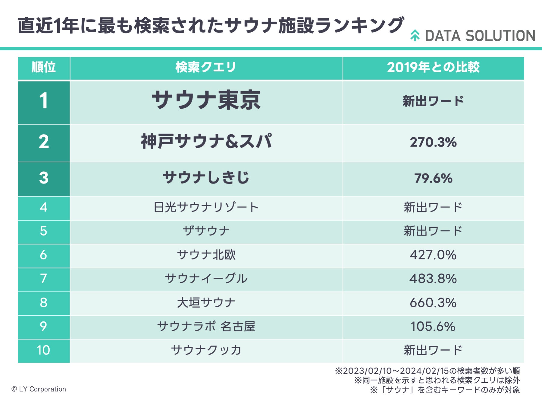 【ヤフー・データソリューション】「サウナの日」にちなんだレポートを公開 検索ビッグデータから見る人気施設第1位は東京・赤坂の「サウナ東京」