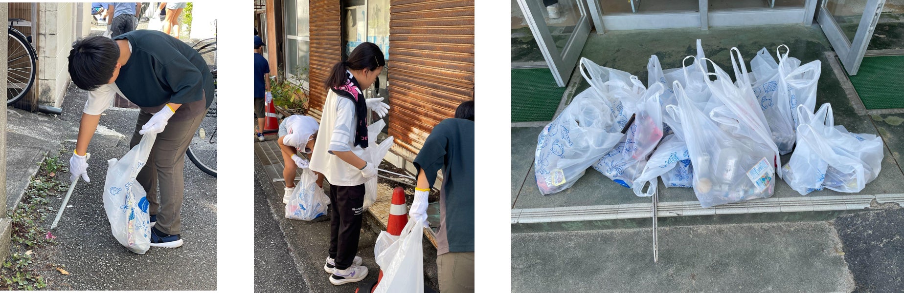 校舎の周りでのごみ拾い