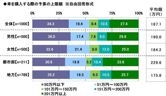車を購入する際の予算の上限額を聞いたところ、平均額は187.1万円でした。