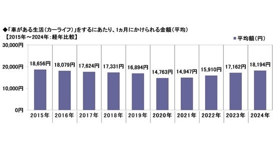 ◆カーライフのためにかけられる金額 平均18,194円/月、昨年調査から1,032円増加