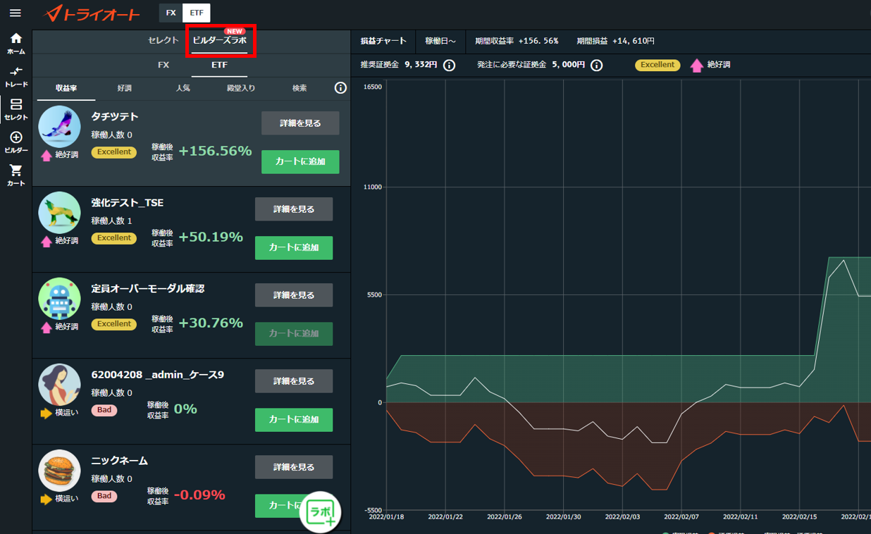 「ビルダーズラボ」機能がトライオートFXに続き、トライオートETFでもリリース