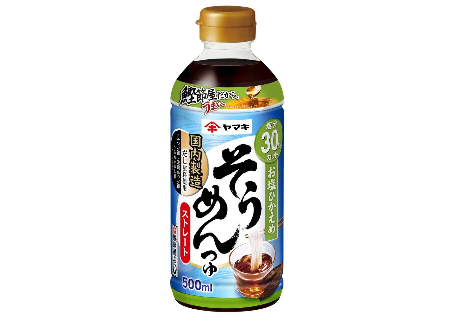 鰹節屋だから、うまい。一口目からおいしく、つゆが薄まりづらい「ストレートそうめんつゆ」のおいしさをそのままに「お塩ひかえめストレートそうめんつゆ500ml」が新登場!