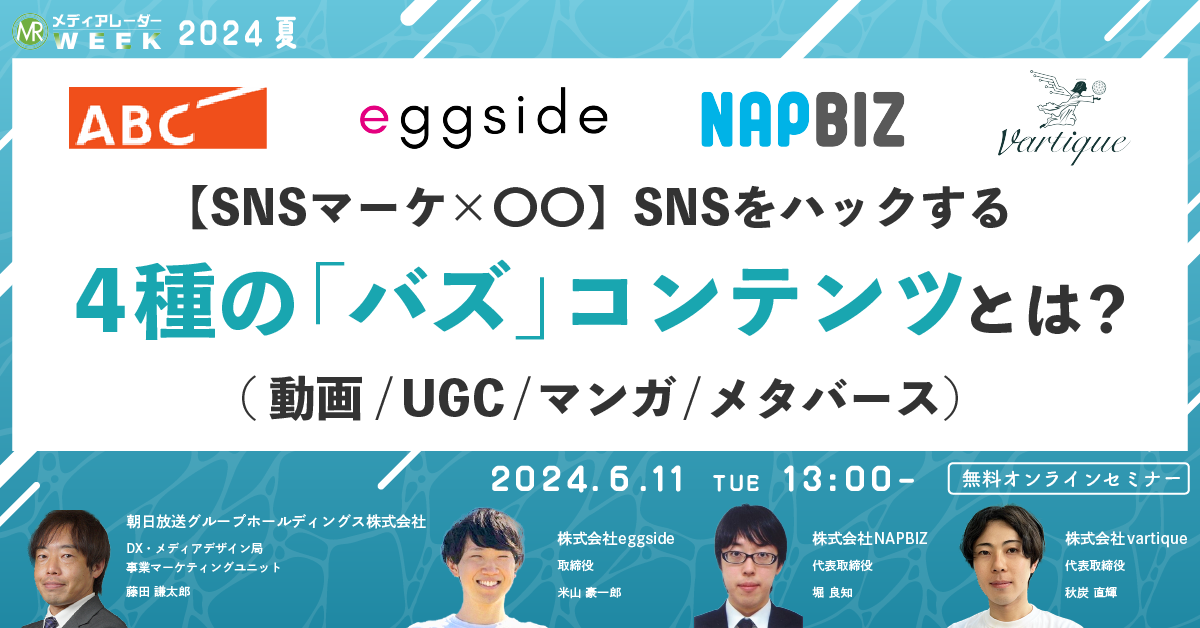 【6月11日開催】【SNSマーケ×〇〇】SNSをハックする4種の「バズ」コンテンツとは?(動画/UGC/マンガ/メタバース)