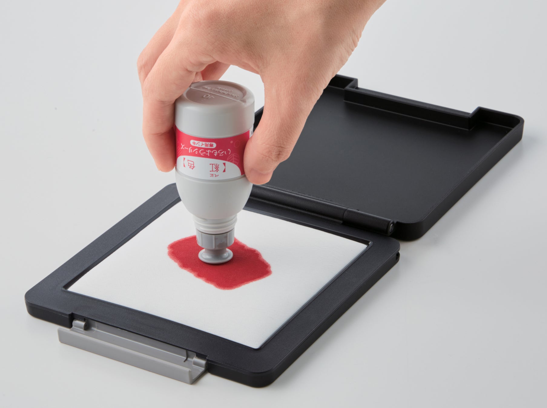 お好きな色のインキを塗布してご使用いただけるスタンプ台です。「いろもよう」シリーズ専用インキ(全29色)、または、シヤチハタ スタンプ台専用スタンプインキ(全6色:黒、赤、藍色、緑、朱色、紫)が使えます。