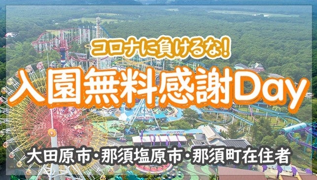 藤和那須リゾート株式会社(栃木県那須町/代表取締役社長:雪本 智史)が運営する“那須ハイランドパーク”では、3月19日(土)から3月21日(月)までの期間中、新型コロナウイルス感染症の影響により、遠方へのお出かけが難しい現在、この春休みに少しでも楽しい思い出を作ってコロナ禍を乗り越えて頂きたいという願いを込めて、大田原市・那須塩原市・那須町にお住いの方を対象に、入園無料サービスを提供する「入園無料感謝Day」を開催いたします。春休みはぜひ、那須ハイランドパークで素敵な休日をお過ごしください♪