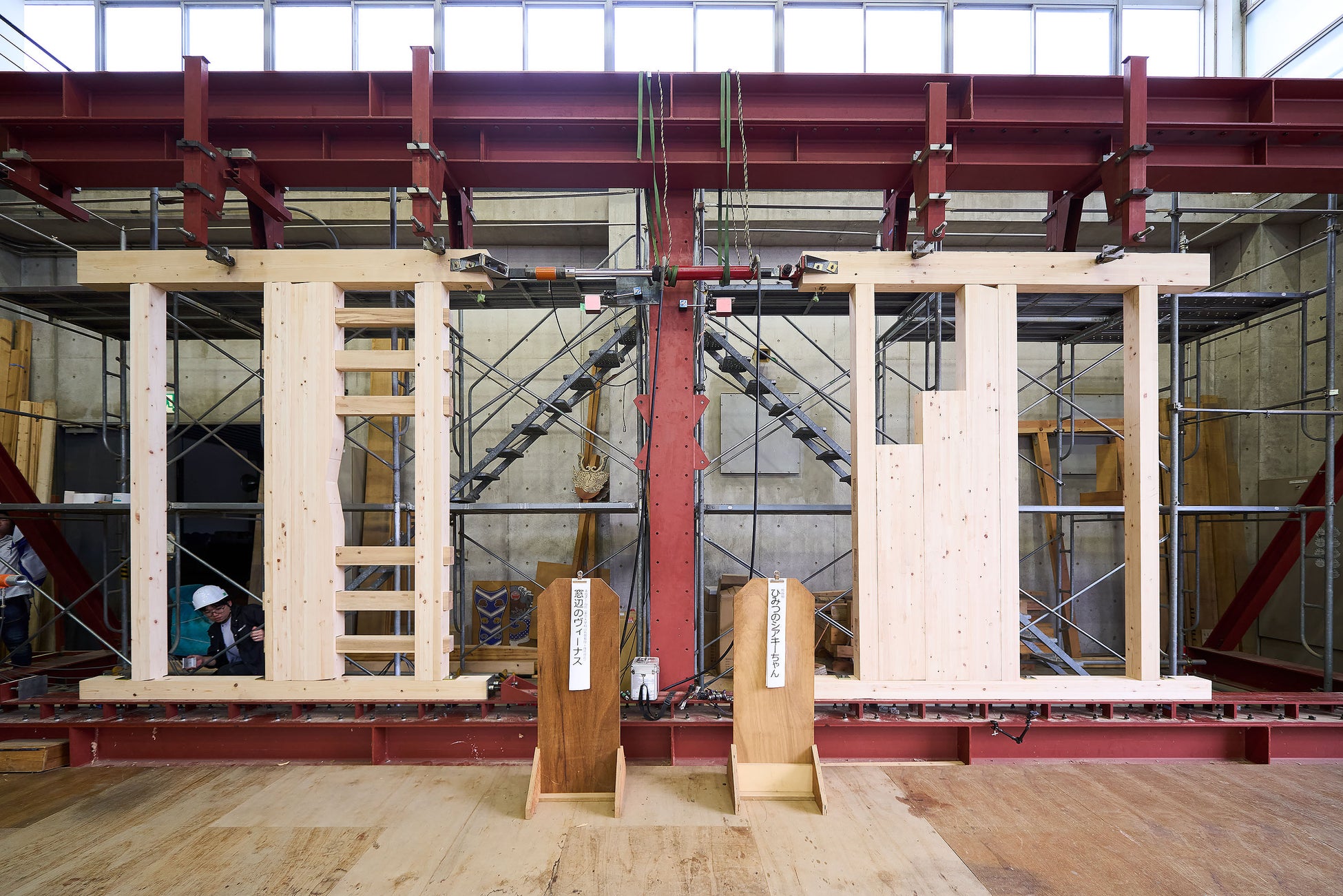 カベワンGPは1998年から始まった「木造耐力壁ジャパンカップ」を前身としており、今年で28年の歴史を持つ大会です。1995年の阪神淡路大震災後、「木造は弱い」という風潮が強くなりました。大会発起人である東京大学名誉教授の稲山正弘氏は、社会が抱く木造建築に対する認識の是正とともに、木造耐震技術の開発促進、技術者の育成などをミッションに掲げ、大会をスタート。大会を通じて得られる耐力数値や破壊性状などの実践的なデータは、そのまま技術の進歩に活かされています。