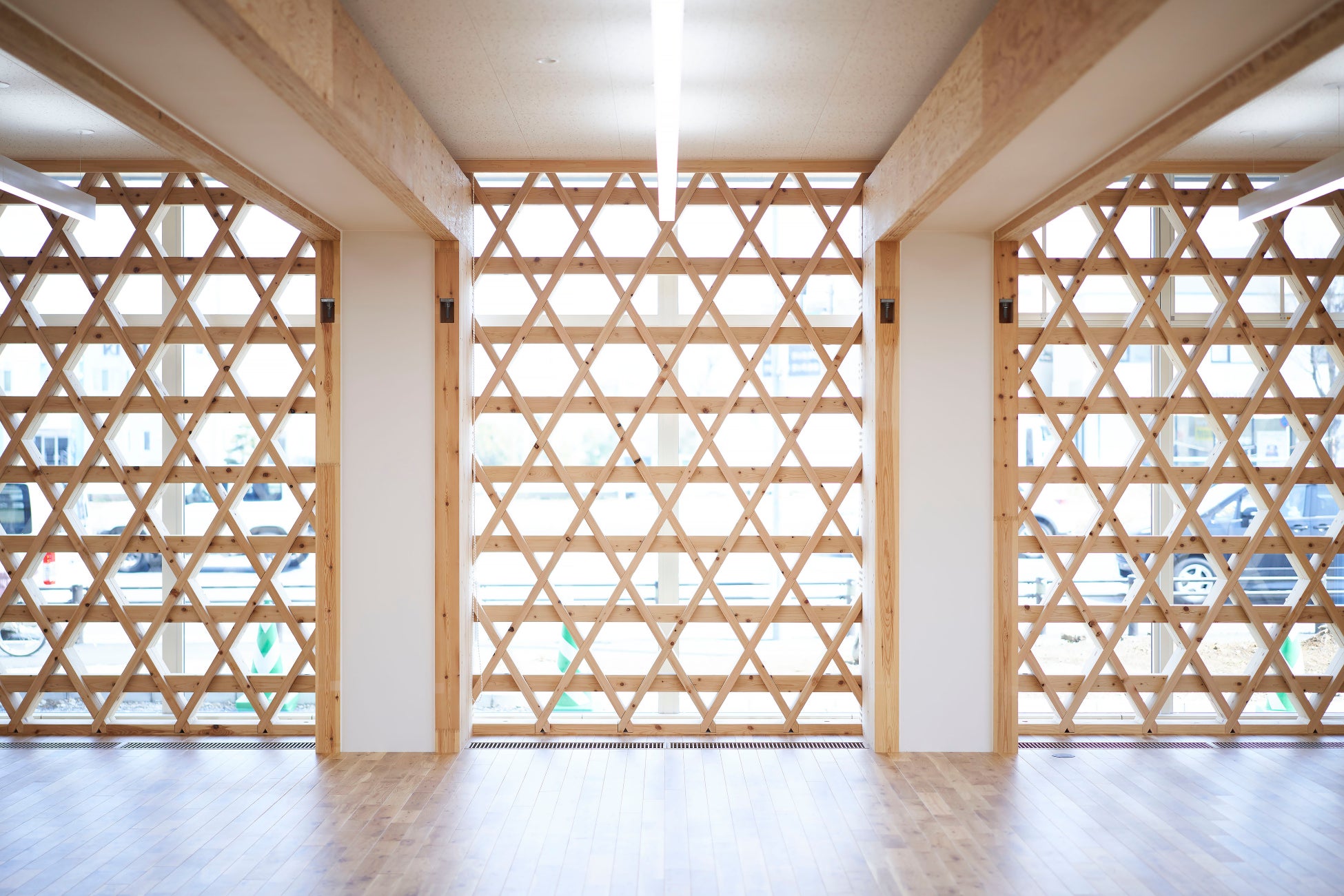 弊社は木造耐力壁ジャパンカップ時代の大会黎明期から出場。今大会の結果を合わせると総合優勝7回、トーナメント優勝9回を達成しています。さらに2023年には大会レコードとなる「71.2kN」を記録。これは「7トン以上の加力に耐える壁」ということになります。カベワンGPに出場し、結果を残すことで木造建築の技術を高めてきた弊社は、戸建て住宅や中大規模木造建築にその知見を展開。純木造8階建て本社ビル(埼玉県さいたま市)や純木造5階建てオフィスビル(神奈川県川崎市)に採用されている「組子格子耐力壁」、「相欠き合わせ柱式ラーメン構造」といった革新的な構造技術は、まさにカベワンGPから誕生したものです。