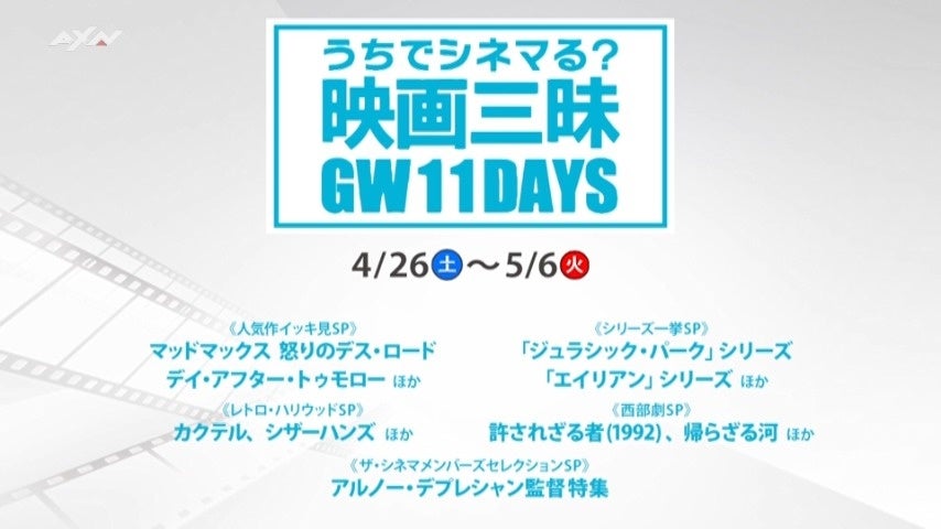 ゴールデンウィークの11日間はザ・シネマ尽くし!特別編成で大特集!うちでシネマる?映画三昧GW11DAYS