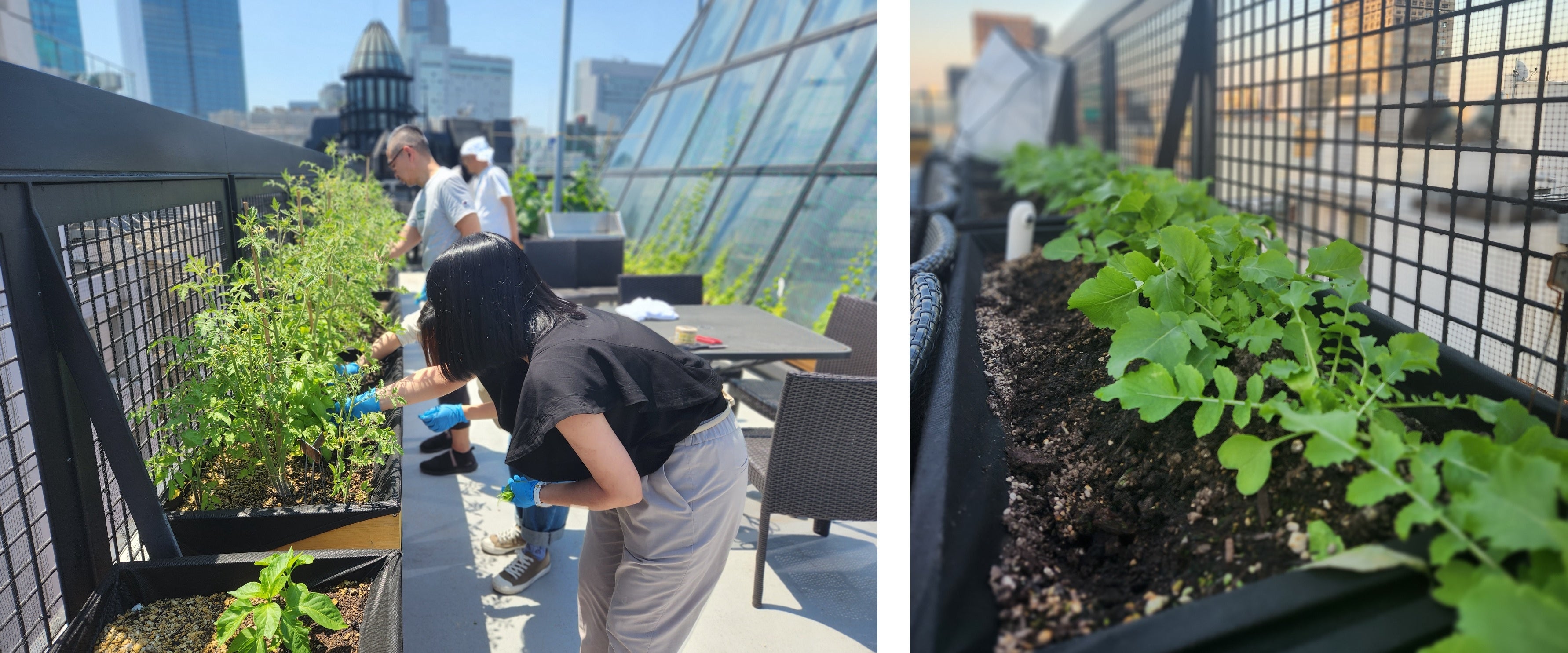 本社屋上農園を活用したフードマイレージゼロに向けたアーバンファーミングを実施中