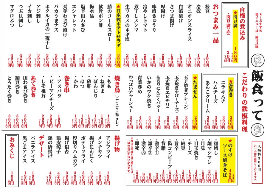 居酒屋的な「お通し」はなし。誰もが日常的に使える値段で、どこか懐かしい看板料理たちは「早い・安い・旨い」の3拍子が揃います。
