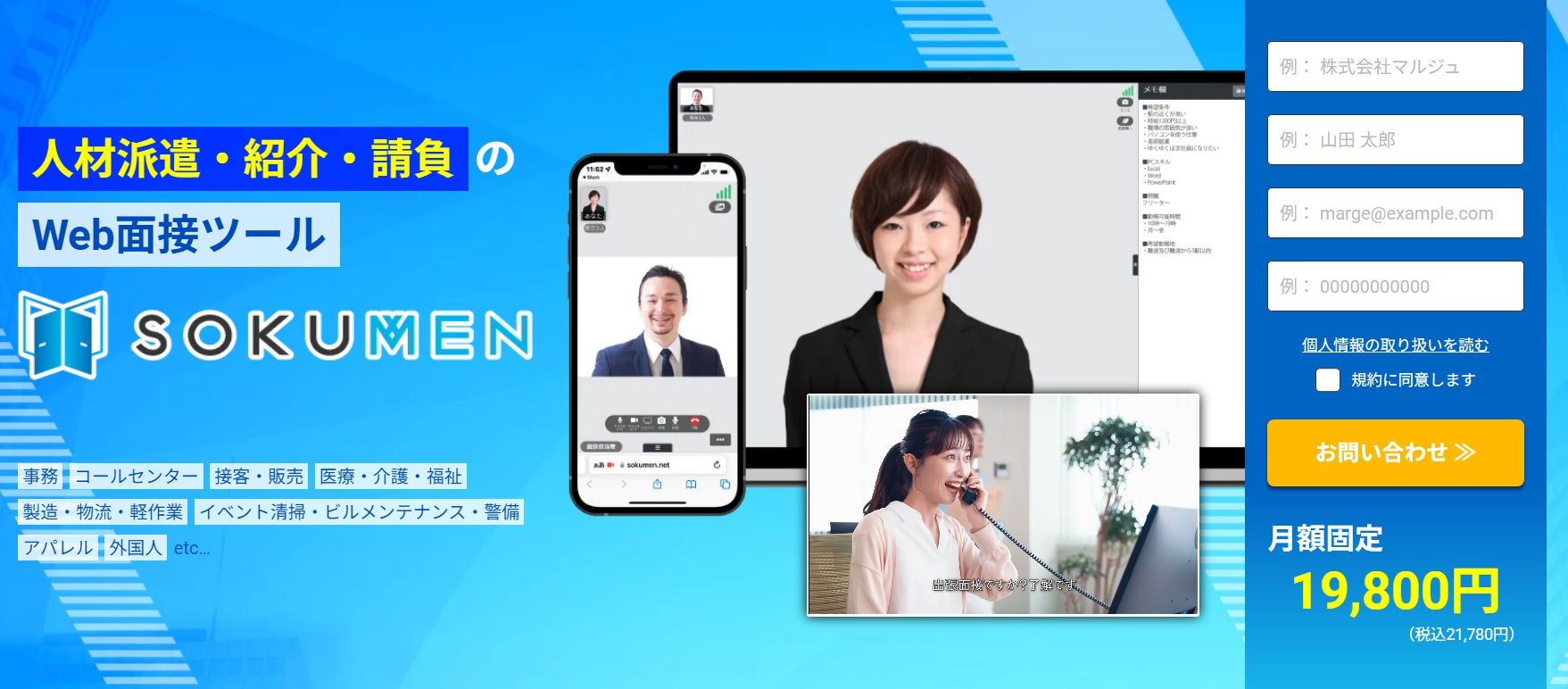 人材派遣・人材紹介・請負会社をDXするWeb面接ツールSOKUMENの商品紹介ページをリニューアルしました。