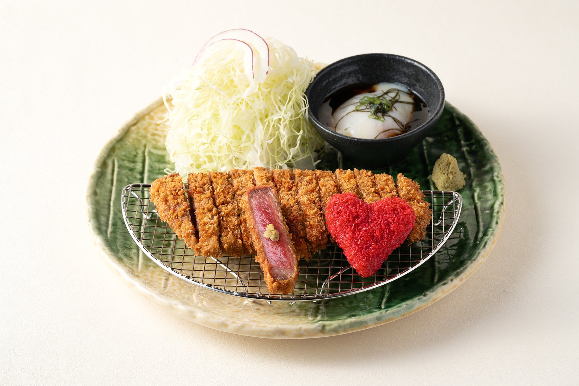一口サイズの可愛らしい「真っ赤なハートメンチ~ぎゅうかちゅっ~」は、お好きな牛カツ膳にトッピングしてお楽しみいただけます。