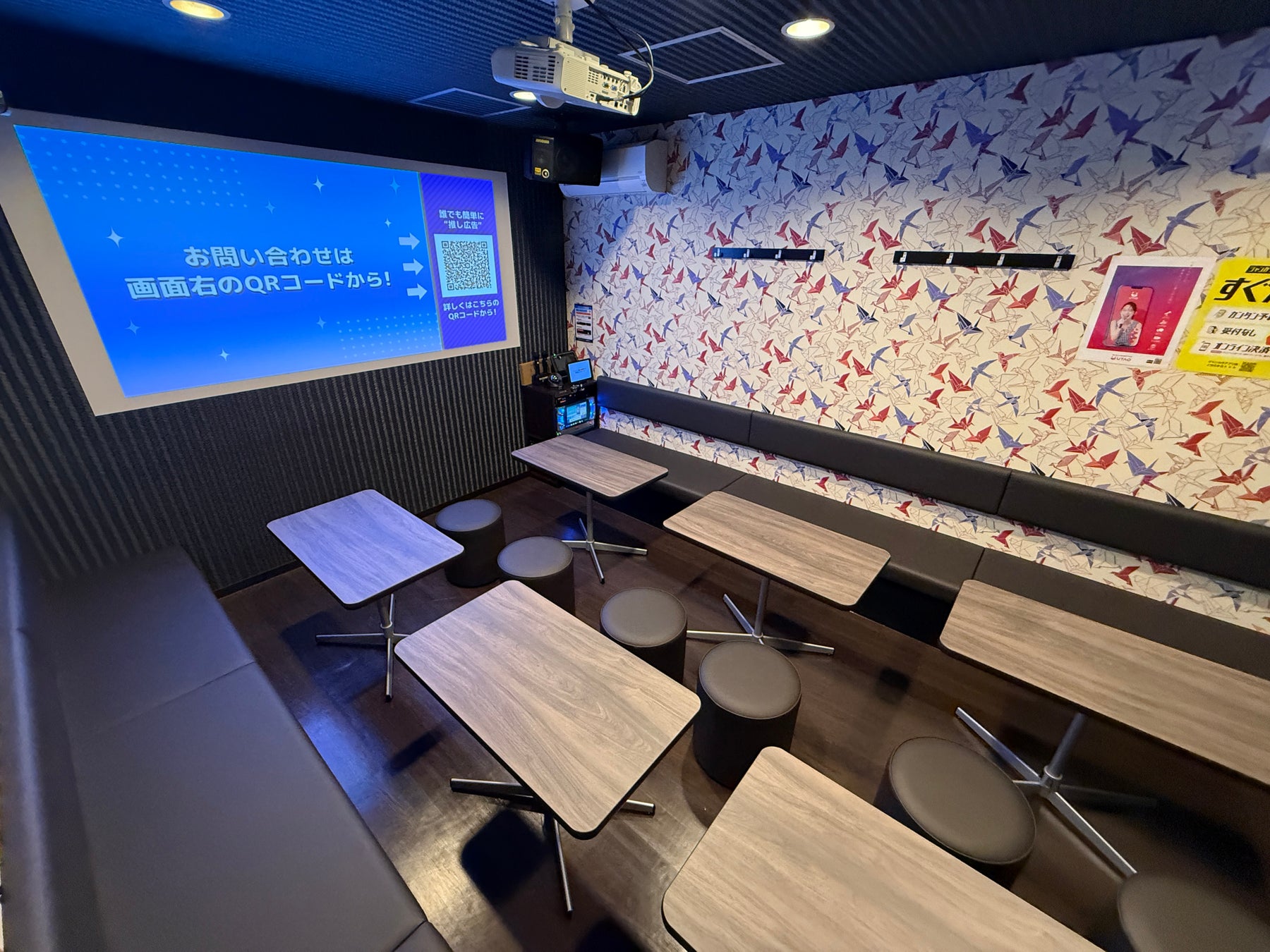 カラオケはもちろん、スマホのミラーリング機能を使ってライブ映像などの推し活も楽しめる、多目的スペースとなっています。