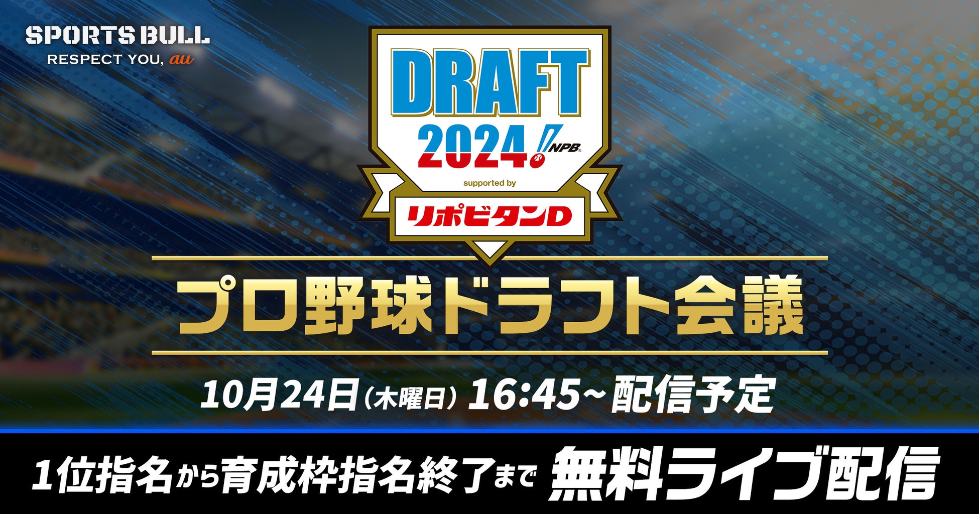 株式会社運動通信社(本社:東京都港区、代表取締役社長:黒飛 功二朗 以下、運動通信社)は「プロ野球ドラフト会議 supported by リポビタンD」を、運動通信社が運営するスポーツメディア「SPORTS BULL(スポーツブル)」内の特設ページ (https://sportsbull.jp/stats/npb-draft2024/) にて1巡目指名から育成枠指名終了まで、株式会社TBSテレビの協力のもと完全無料ライブ配信します。ライブ配信とともに選手名鑑、ドラフト超速報、関連選手コラムなどのスペシャルコンテンツも取り揃えています。今年度からはSPORTS BULLで配信している「東京六大学野球」「東都大学野球」「首都大学野球」の映像から、ドラフト注目の選手をオリジナルの動画コンテンツにしてお届けいたします。