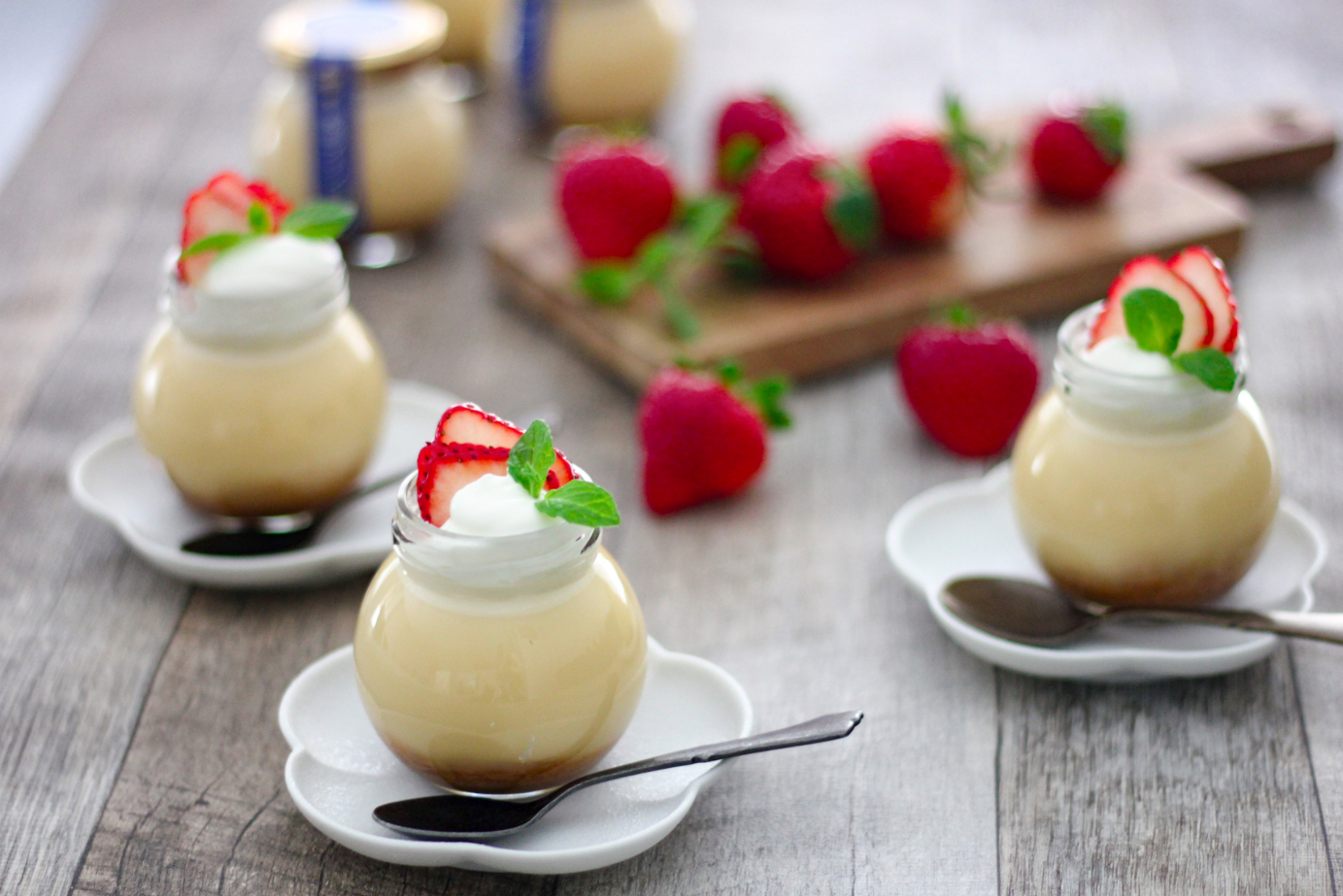 佐賀県産の「いちごさん」などをのせた贅沢なプリン。
