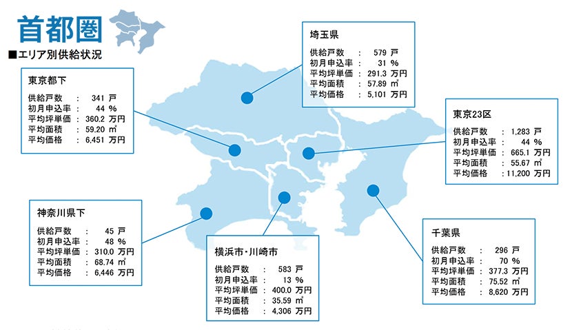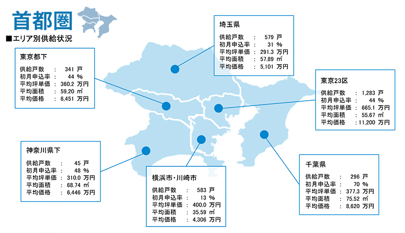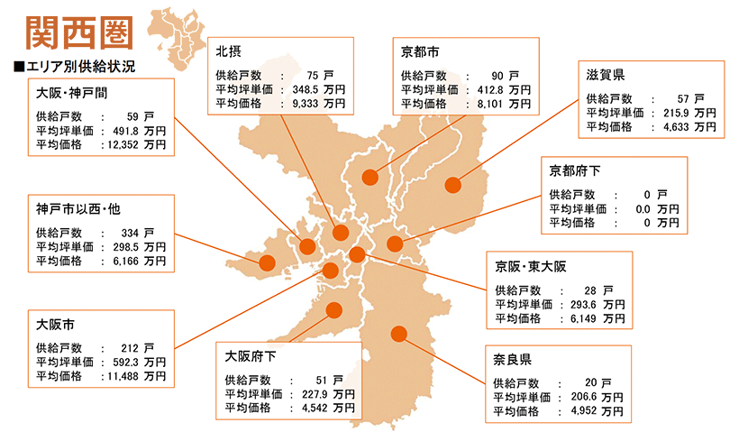 集計対象エリアは首都圏及び関西で、それぞれのエリア別相場情報、需給動向、着工件数等を集計しました。