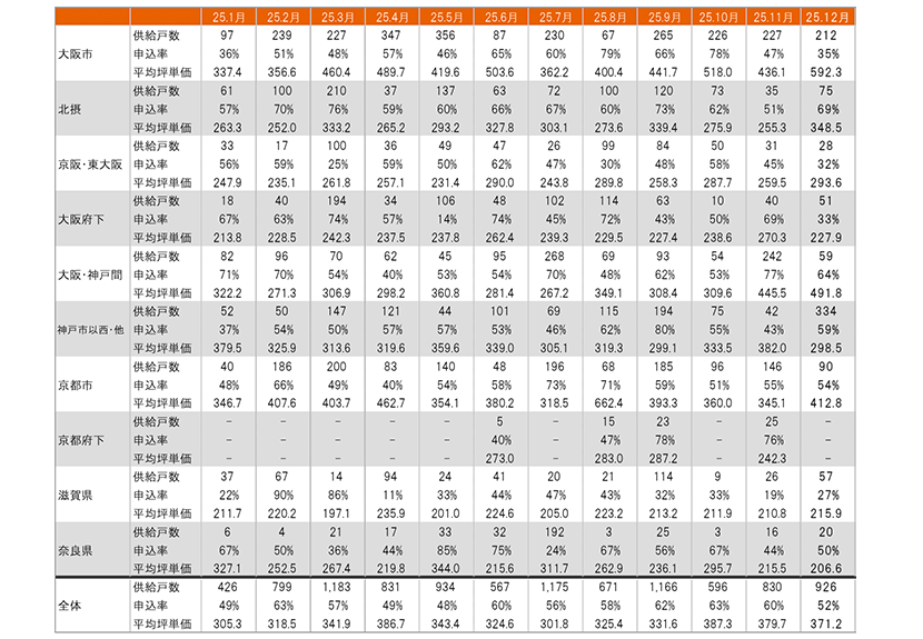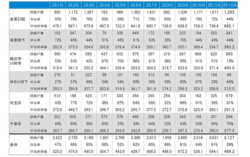 月例新築マンション動向2026年3月号(2025年12月度分譲実績)