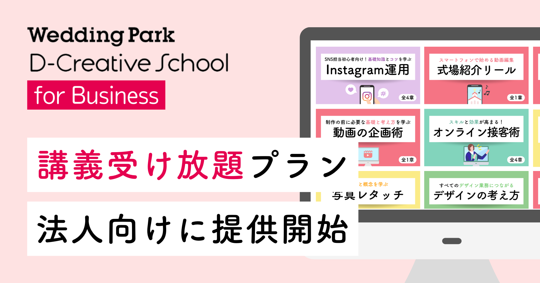 また、契約期間中全講義が受け放題になる法人向けプラン「Wedding Park D-Creative School "for Business"」の提供も2022年5月より開始しております。