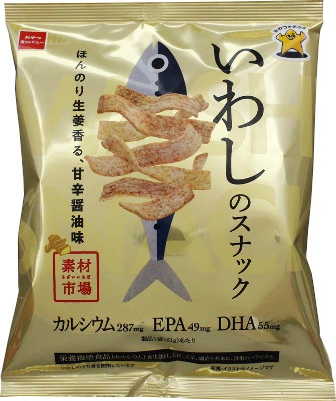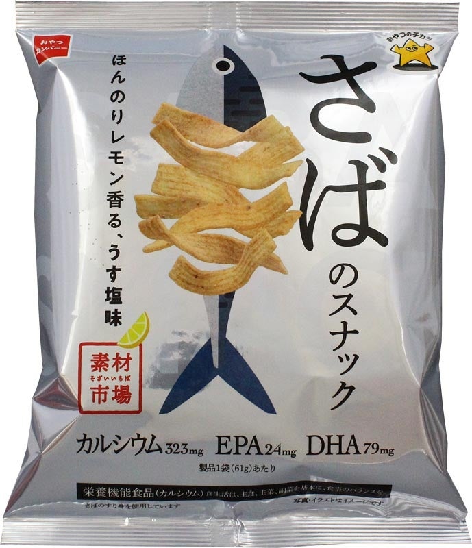 株式会社おやつカンパニー(本社所在地:三重県津市 代表取締役社長:手島文雄)は、間食における健康ニーズ“ちょっと気になる”に寄り添い、カルシウム・EPA・DHAの栄養素を手軽に摂れる栄養機能食品(カルシウム)のスナック菓子『素材市場 さばのスナック』『素材市場 いわしのスナック』を展開しています。
