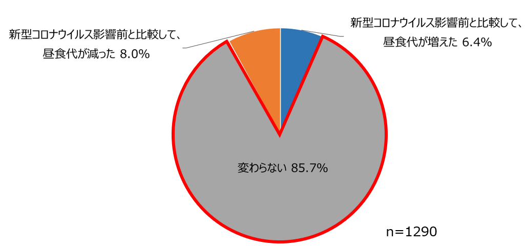 ・ランチ代の平均金額をコロナ前と比較したところ、「変わらない」が85.7%