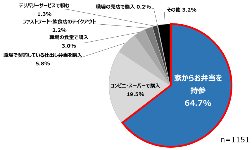 ・職場でのランチは、「お弁当持参」が64.7%と最も高い