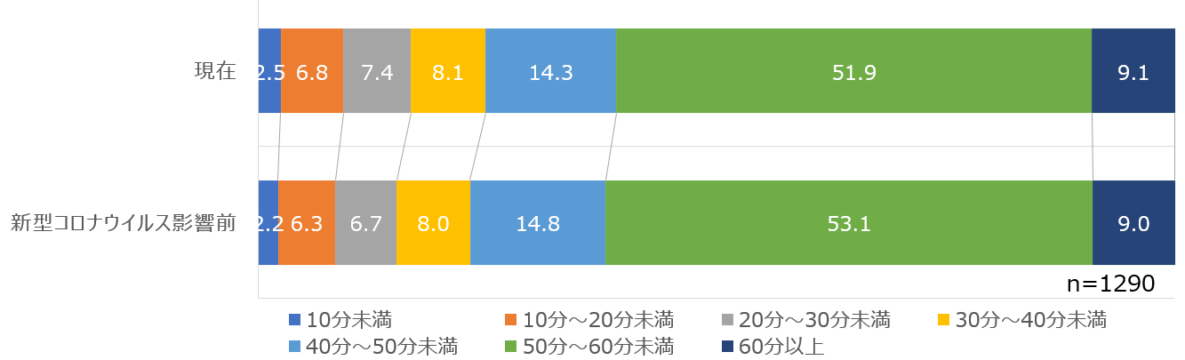 ・コロナ影響前の平均時間は47.7分で、差異はほとんどみられない