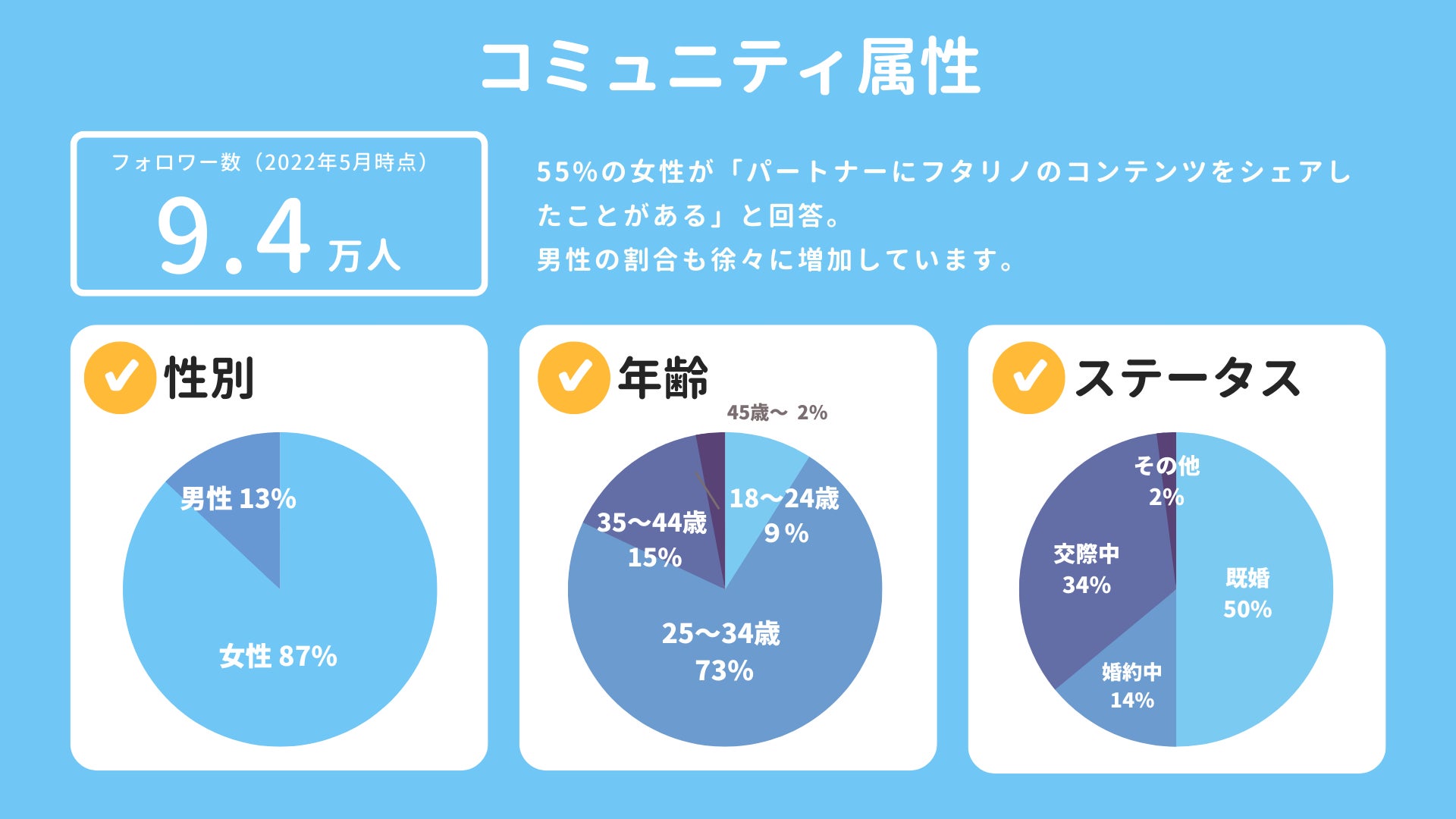 フタリノは、9.4万人のフォロワーの皆さんと一緒にパートナーシップについて考えるメディアコミュニティです。