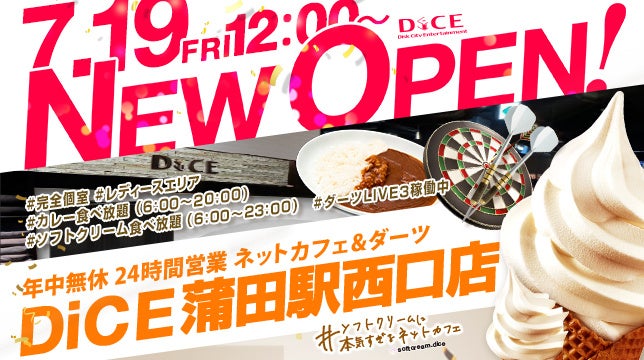 7月19日(金)12:00 OPEN!ネットカフェ&ダーツ DiCE 蒲田駅西口店 #ソフトクリームに本気すぎるネットカフェ