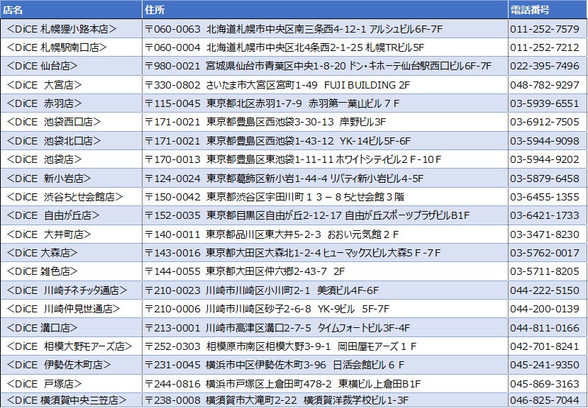 「DiCE」 は、2000 年より関東を中心に展開しているインターネットカフェです。高級感や清潔感などから、多くの女性のお客様にもご好評を得ています。豊富な雑誌・コミック、フリードリンクに加え、ソフトクリームに関しては「ソフトクリームに本気すぎるネットカフェ」として毎週違う味の提供や、他社とのコラボも行っています。また、グループ利用に最適な完全個室の VIPルームに加え、ダーツ・カラオケ・ビリヤードそして e スポーツ等のアミューズメントコンテンツもお楽しみいただけます。「暇をつぶす」ネットカフェから「時間を作って通いたい」ネットカフェに。最高水準の体験を提供し、世の中をもっと楽しくするネットカフェです。