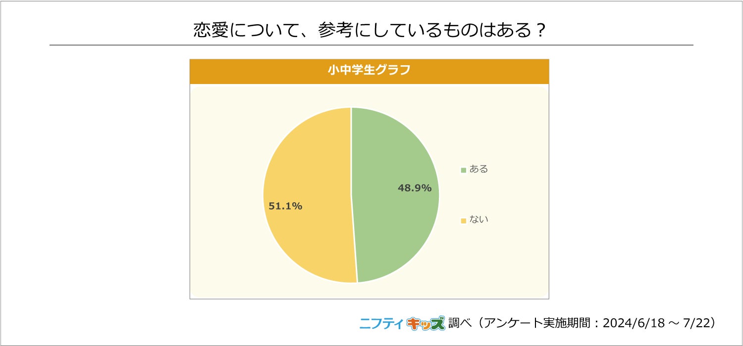 恋愛について参考にしているものが「ある」人の割合は約半数を占めました。