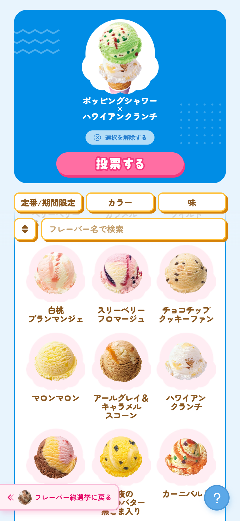 「フレーバー総選挙」へ投票ください。