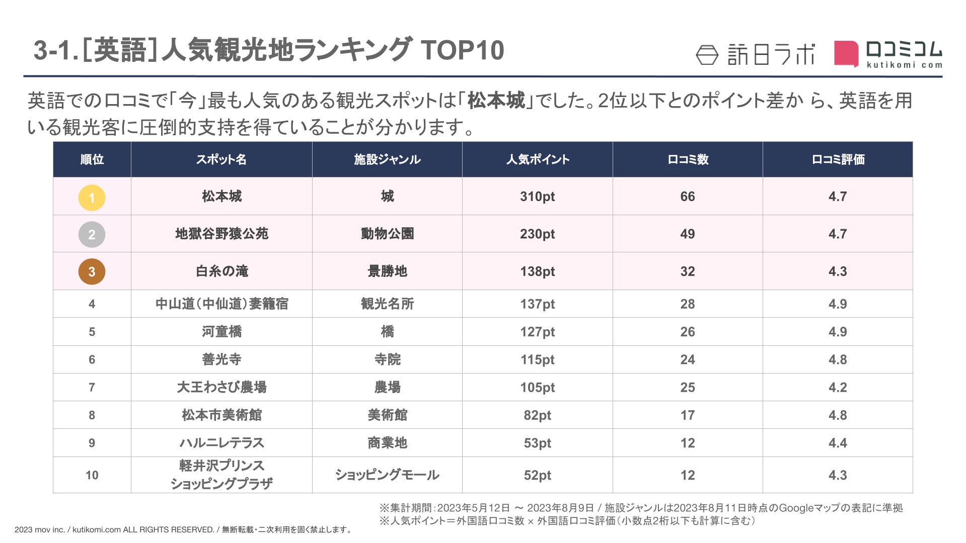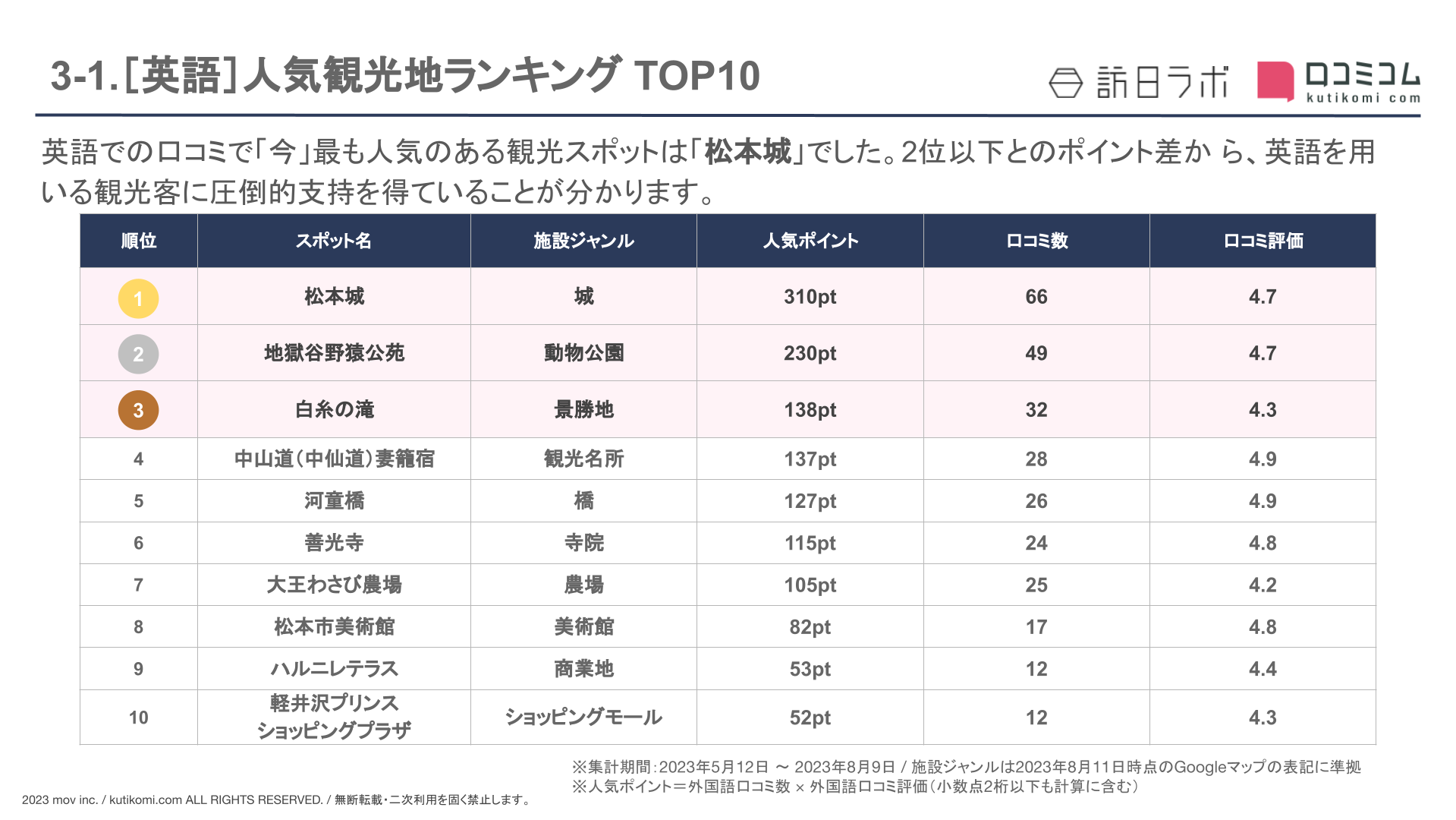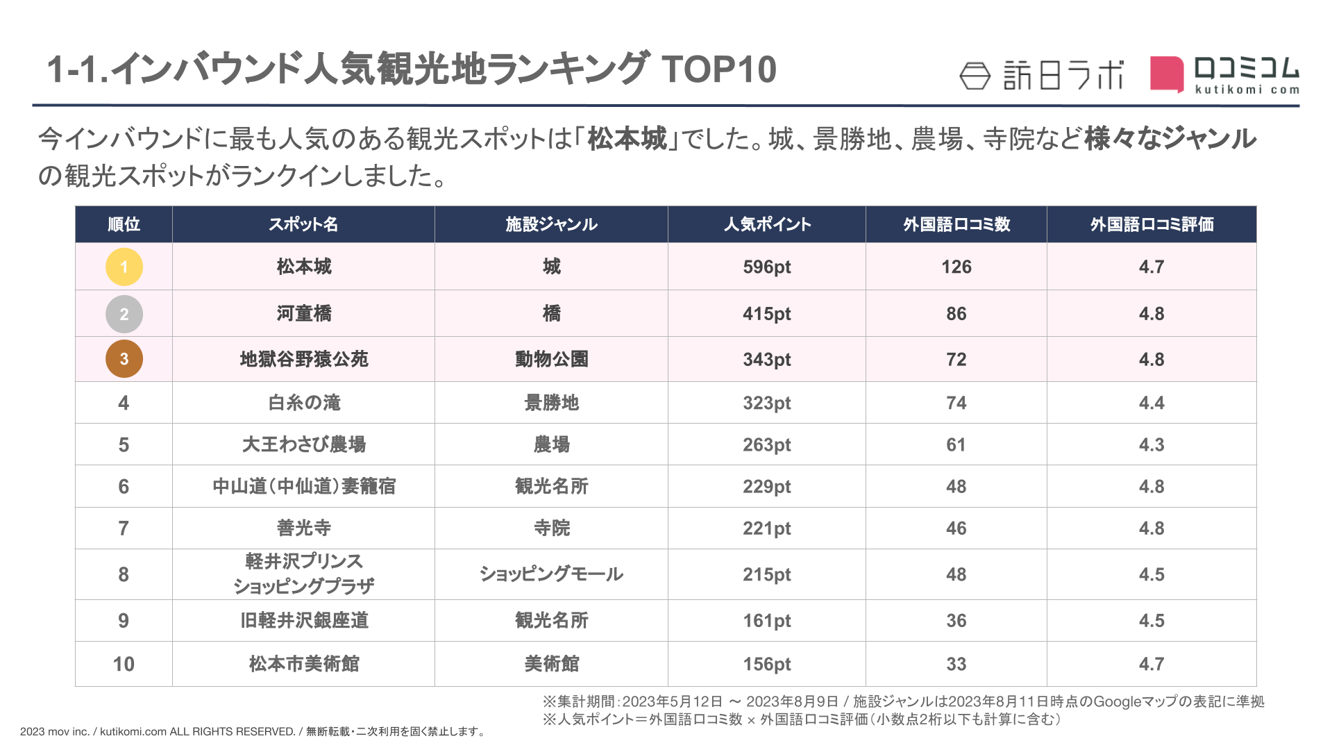 【独自調査】インバウンド人気観光地ランキング長野編:コロナ後 最新の訪日客の支持を集めたスポットTOP10を発表 #インバウンドMEO