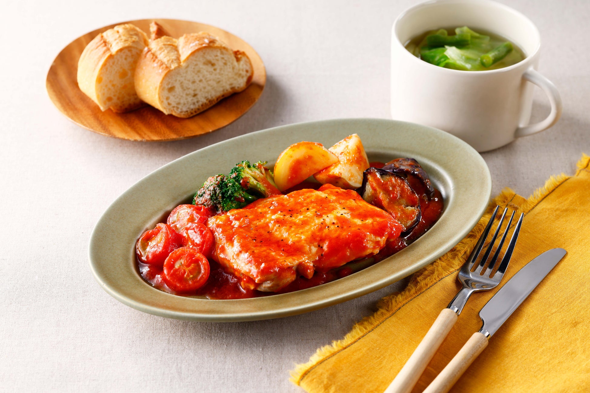 しっとりと焼いたチキンステーキをフレッシュ感あふれるトマトソースで仕上げました。