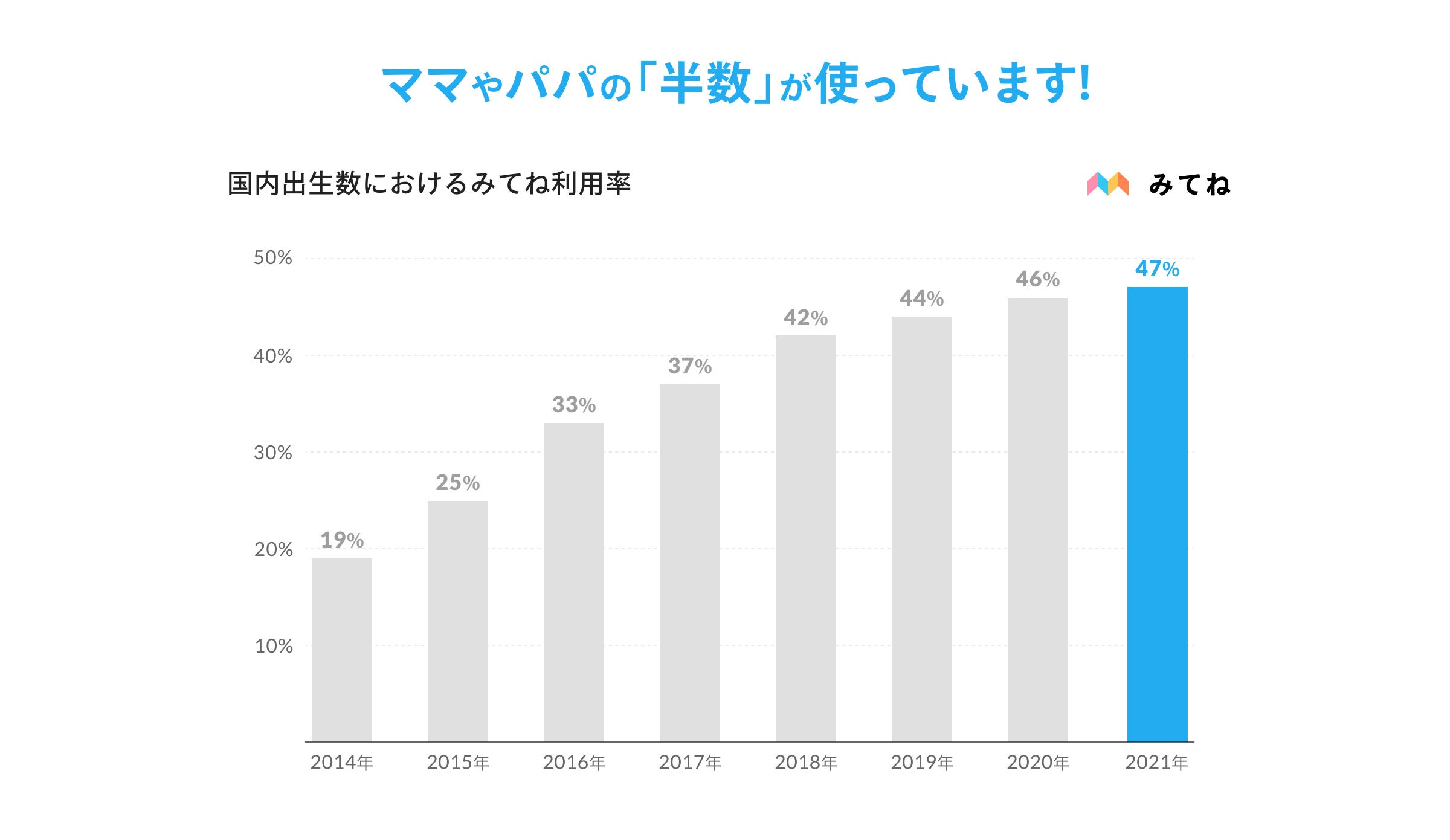 ※2 「みてね」登録時に入力されたお子さまの誕生日と厚生労働省発表「人口動態統計」から算出。2022年8月時点で47.1%。