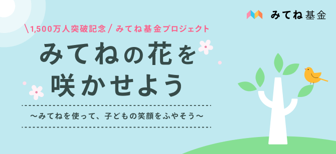 「みてね」は、子どもやその家族を取り巻く社会課題の解決を目指す非営利団体を支援する「みてね基金」の活動に取り組んでいます。「みてね」利用者数1,500万人突破を記念して、みてね基金プロジェクト「みてねの花を咲かせよう」〜みてねを使って、子どもの笑顔をふやそう〜を実施します。