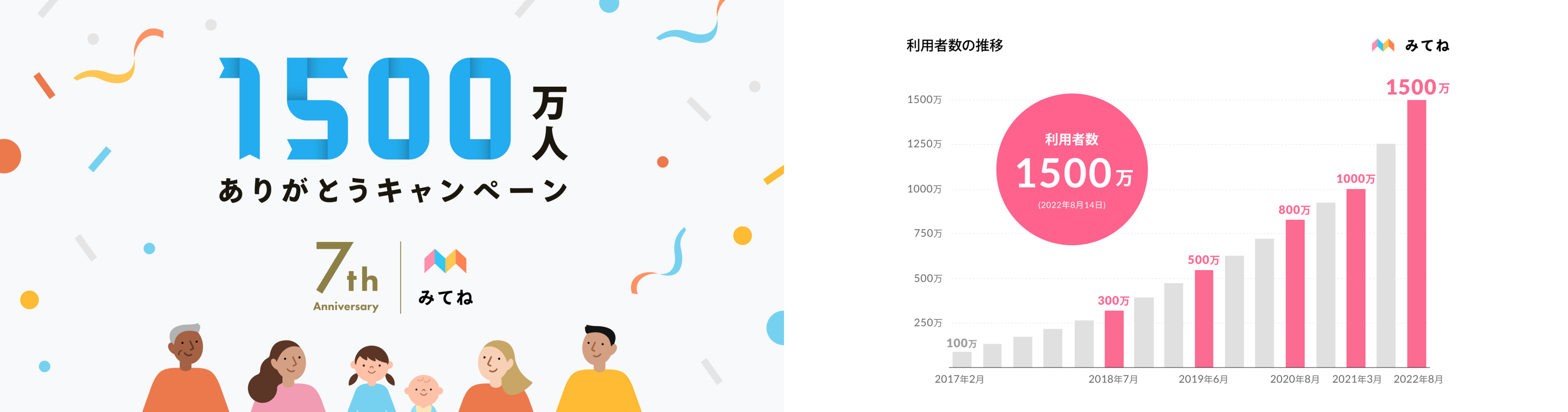 お陰様で、「みてね」が1,500万人の方にご利用頂くサービスに成長しました。日頃ご利用頂いているユーザーの皆さまにあらためて感謝申し上げます。