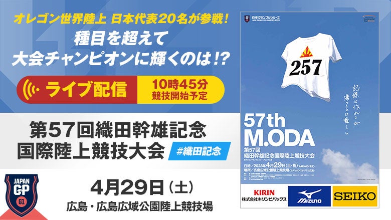 2023年4月29日(土) に開催する日本グランプリシリーズ グレード1 「第57回織田幹雄記念国際陸上競技大会」を日本陸連公式YouTubeにてライブ配信することが決定しました!