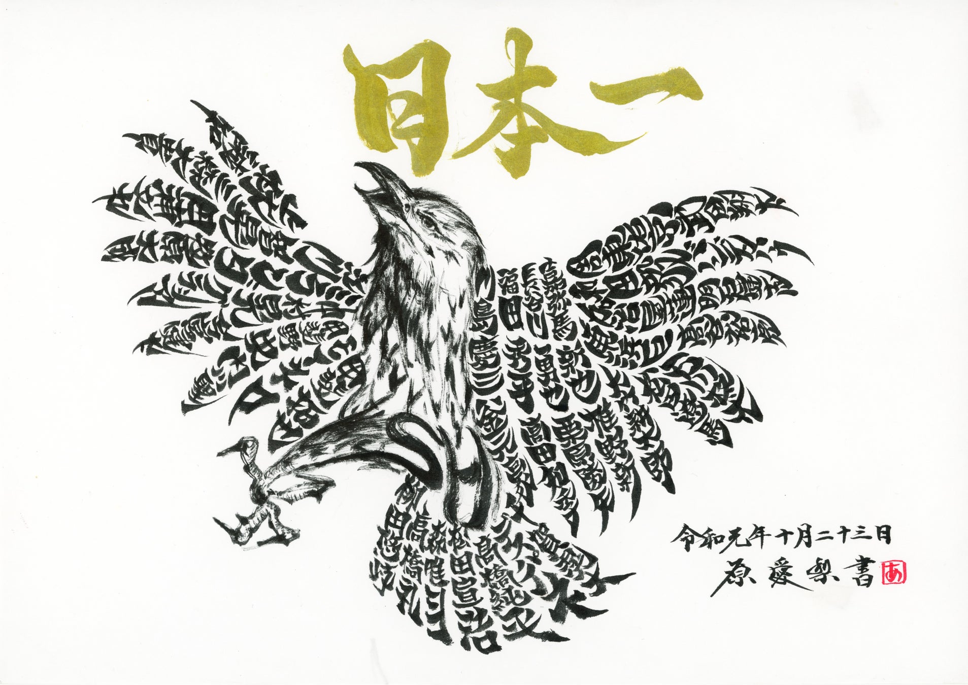 鷹のモチーフの羽ひとつひとつに選手の名前を入れ、