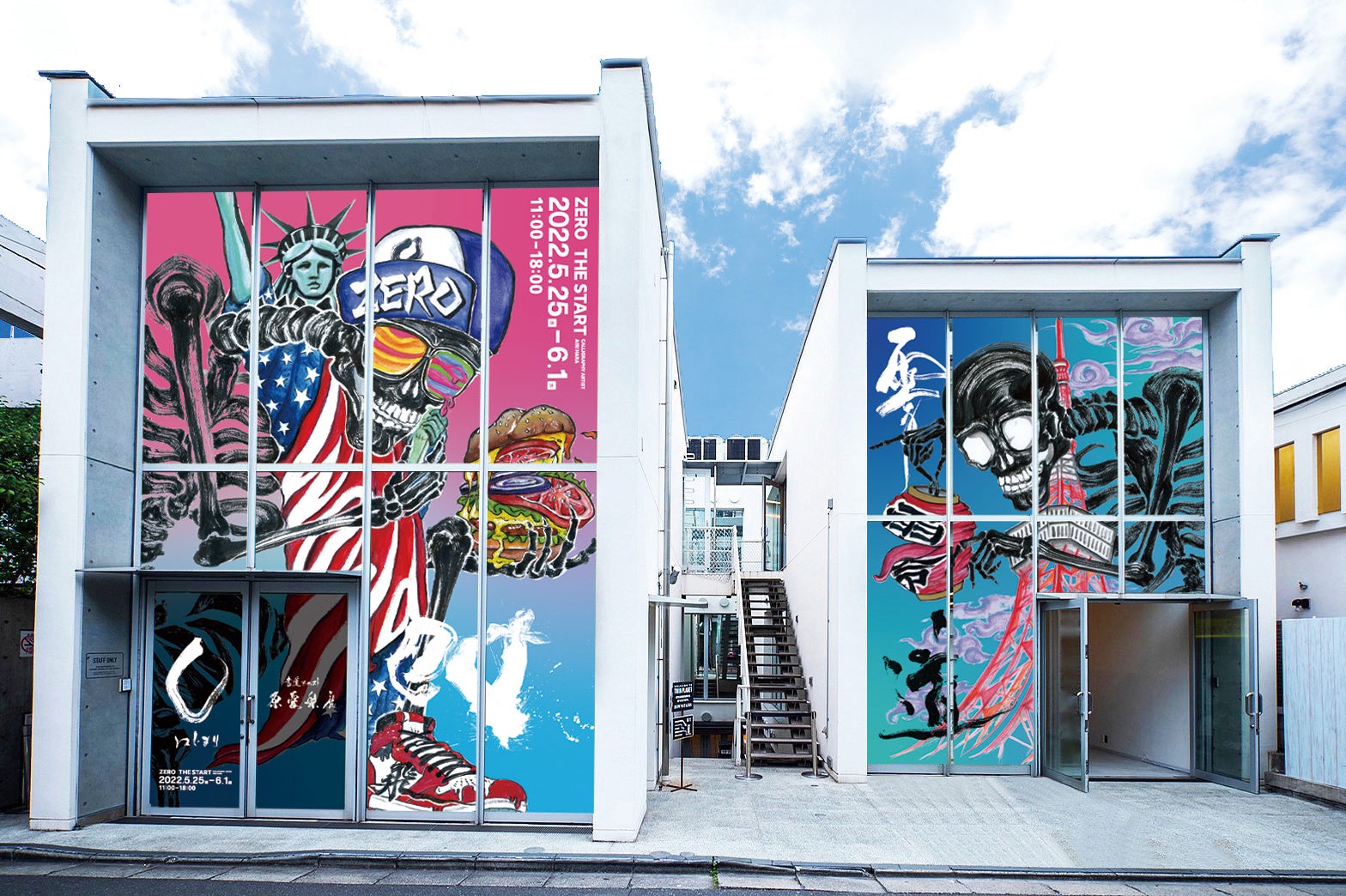 SPAGHETTI外観ガラス全面に高さ6mの作品を展示。