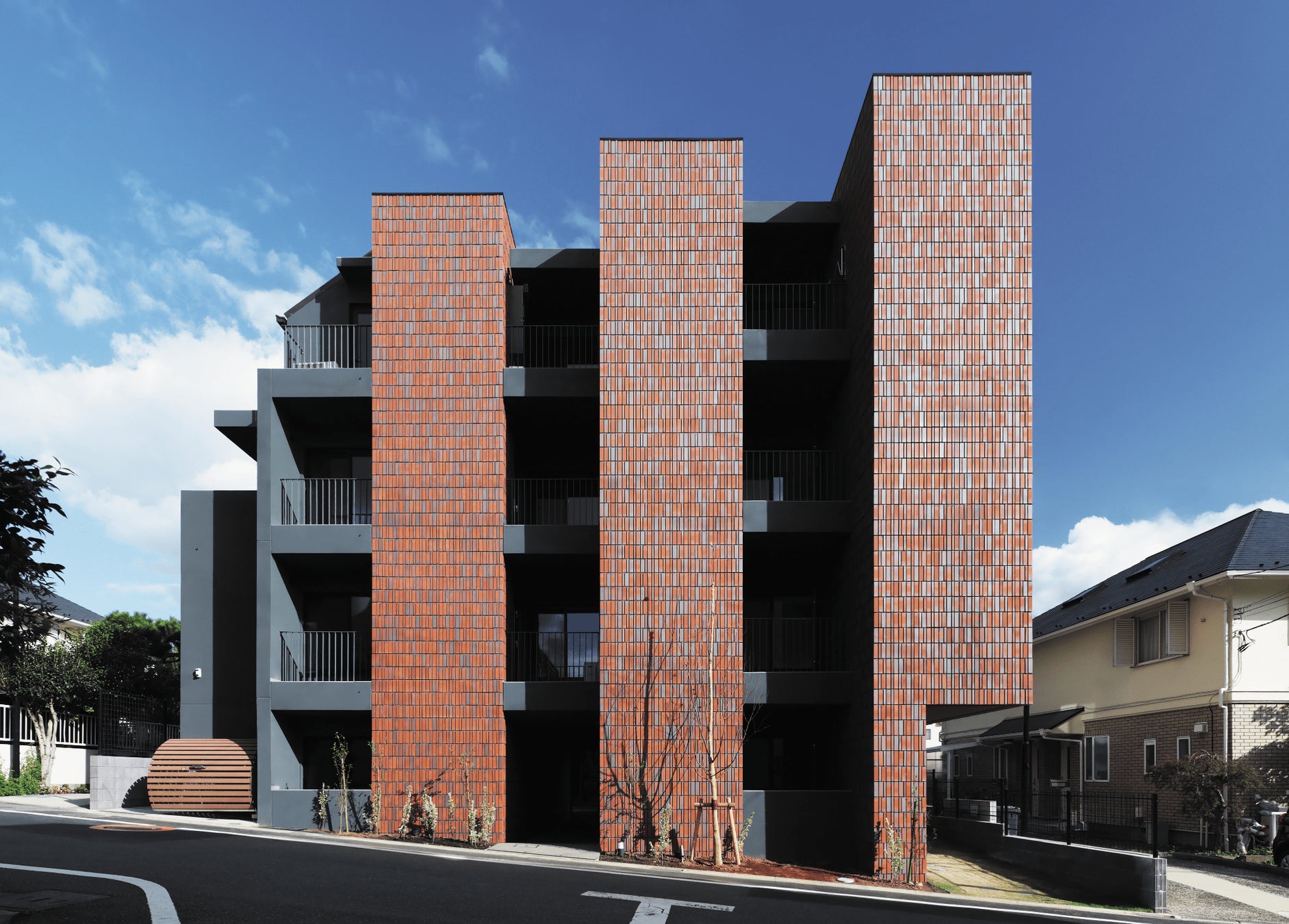 世田谷区砧の落ち着いた住宅地に佇む、地上4階建・全19戸の賃貸集合住宅である。周辺の戸建住宅群との調和を意識した繊細かつ大胆なデザインが光る。本建築の最大の特徴は、三本の煉瓦仕上げの塔状ボリューム、奥行きを持たせたインナーバルコニー、そして雁行配置された共用廊下の三要素が、住空間に豊かな奥行きと静けさをもたらしている点にある。煉瓦塔はファサードにリズムと陰影を生み出し、前面道路からの視線を遮ることで、住戸のプライバシーを巧みに守っている。インナーバルコニーは隣接する住宅との間に適度な距離感を確保し、外部環境との緩やかな隔たりを演出している。さらに、雁行配置された共用廊下は、各住戸に戸建て住宅のような独立性をもたらし、居住者の専有感と安心感を高めている。これらの設計的工夫は、都市型集合住宅において希少な「静謐さ」と「個の尊重」を実現しており、建築としての完成度の高さと居住者への深い配慮が感じられる。周辺環境との調和を図りながらも、独自の空間性を創出するその姿勢は、都市住宅の新たな可能性を示す好例である。