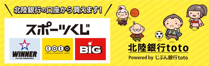 北陸銀行(頭取 中澤 宏)は、ほくほくフィナンシャルグループの北海道銀行(頭取 兼間 祐二)とともにauじぶん銀行株式会社(代表取締役社長 石月 貴史)と連携し、2022年9月26日(月)より「北陸銀行toto Powered by じぶん銀行toto※」(以下「北陸銀行toto」)にて、新商品「WINNER」(読み:ウィナー)の取り扱いを開始いたしますので、お知らせいたします。