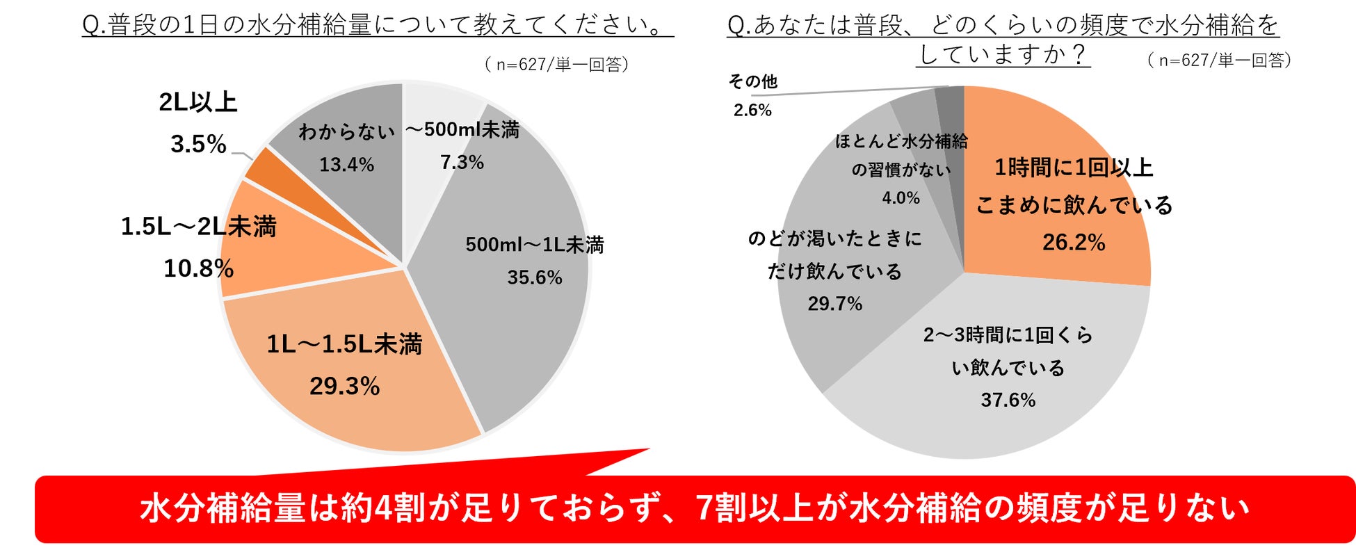 専門家の意見を踏まえると、4月の熱中症対策に必要な、十分な水分補給ができている人は4割程度にとどまり、7割以上は水分補給の頻度が足りないことが判明