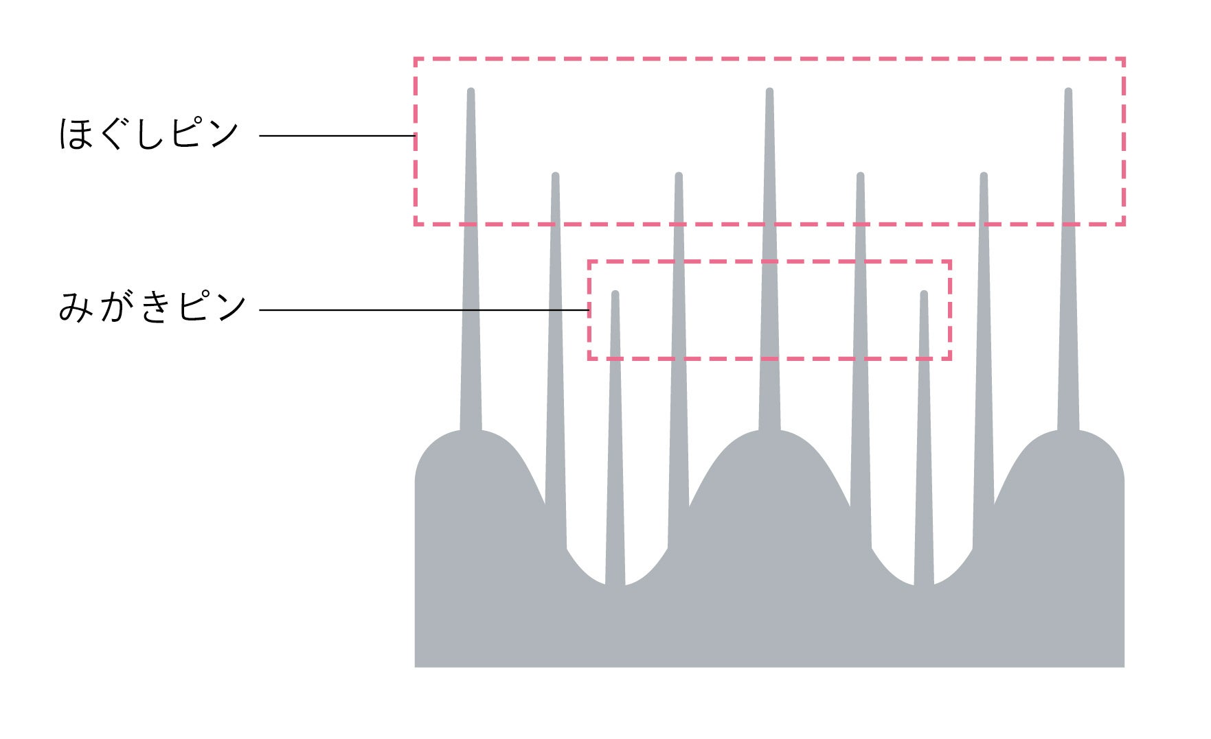先端をまるく加工したピンが、頭皮を心地よく刺激します。