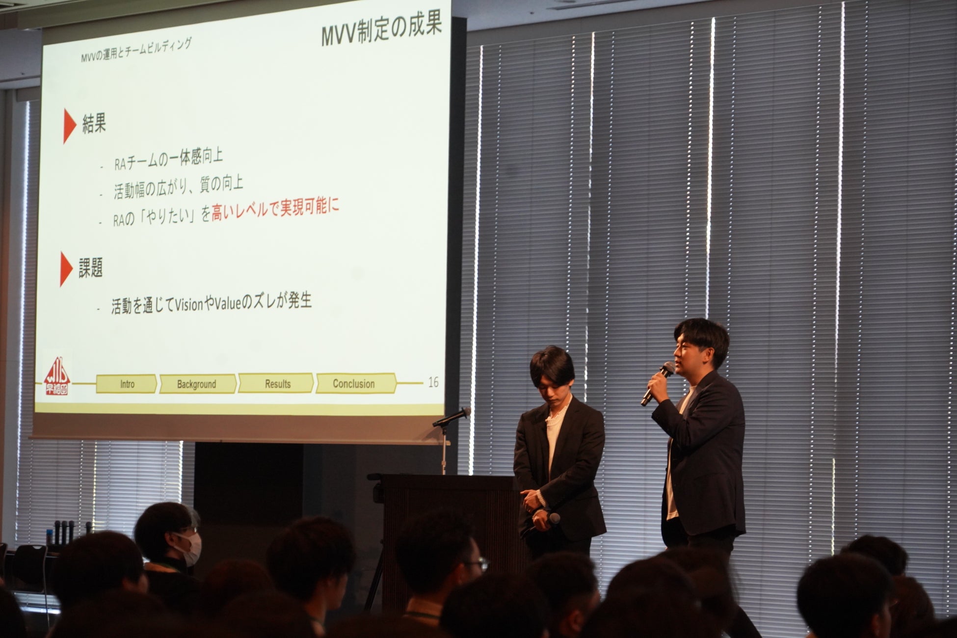 ▼内容:10名のRAが同じ目的に向かって活動するためのMVV(Mission Vision Value)を紹介。また今後は異文化に着目したイベントの企画や、更なる寮のコミュニティ醸成を目指すという未来への展望を発表しました。