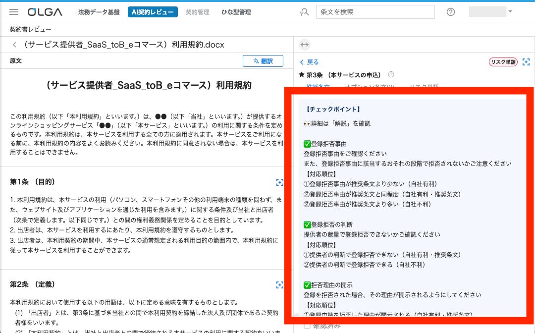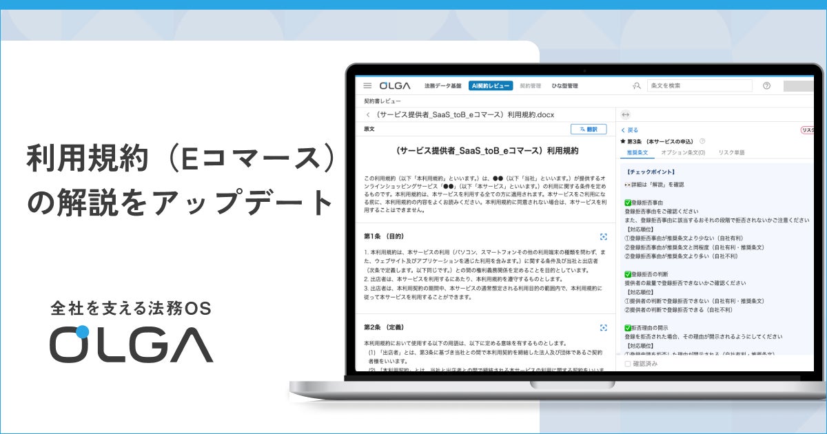 “0秒法務”を提唱し、全社を支える法務OS「OLGA(オルガ)」が搭載する利用規約(Eコマース)の解説をアップデート