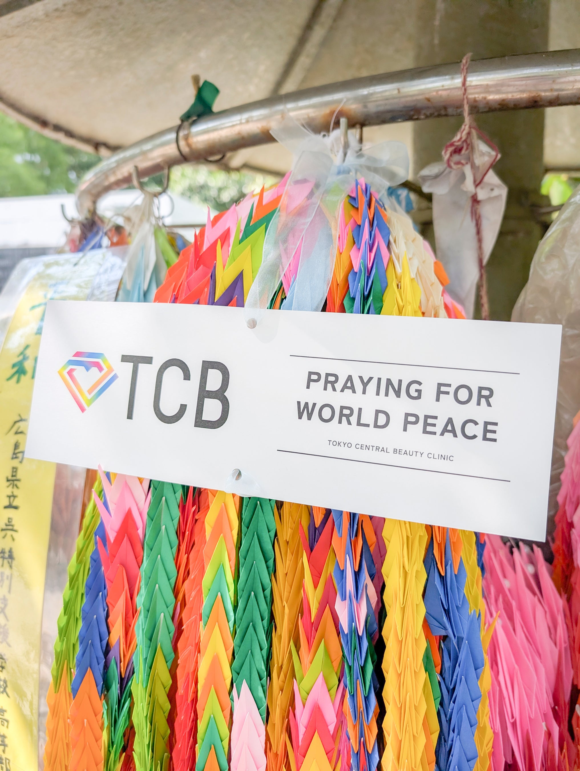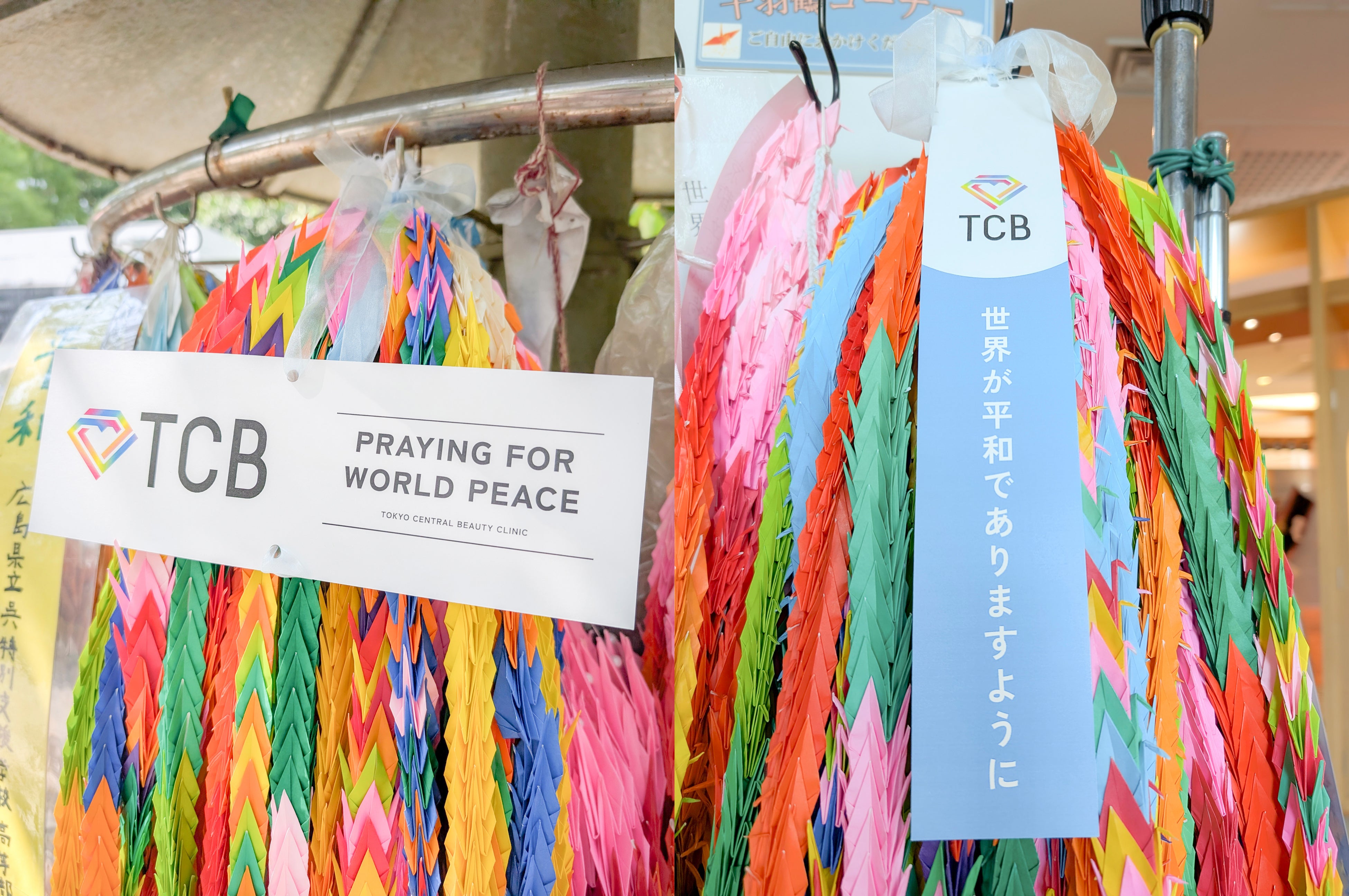 私たちが提供する美容医療は、患者様の心と体の健康の上に成り立っています。この折り鶴には、平和への切なる願いと、すべての命が大切にされる未来への希望が込められています。医療人として、私たちTCBグループは常に人々の幸福と社会の平和に貢献できるよう、事業活動を通じて努力し続けてまいります。