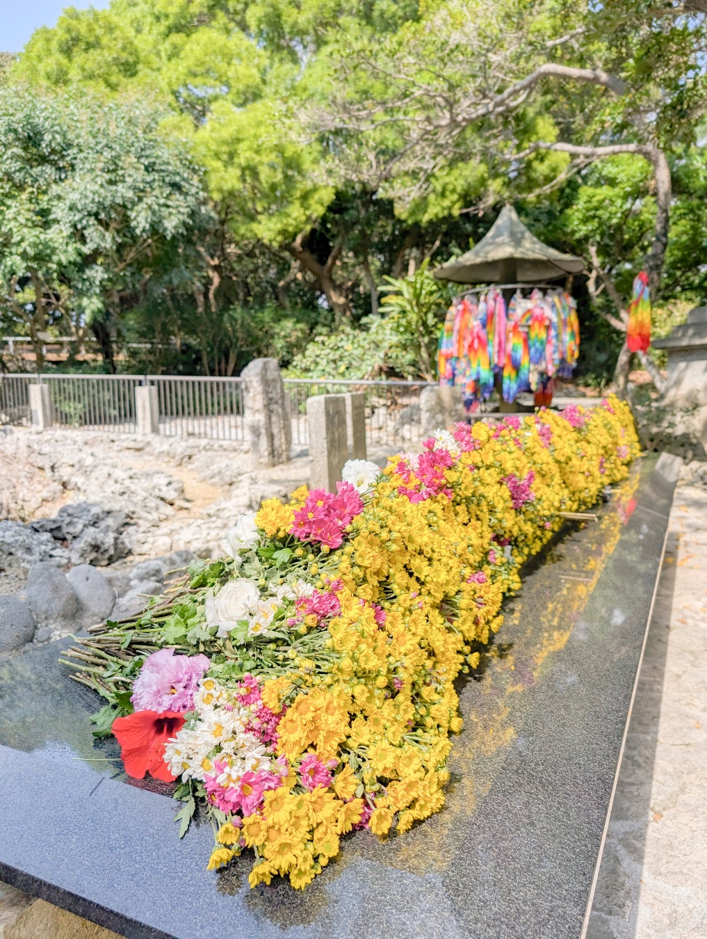 ひめゆりの塔は、1945年の沖縄戦で亡くなった沖縄師範学校女子部・沖縄県立第一高等女学校の生徒や教師のための慰霊碑です。沖縄戦の翌年、両校で最も多くの犠牲者を出したガマ(鍾乳洞)の上に建てられました。